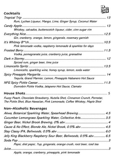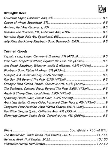 Beer, Wine, Cider, Cocktails, Specialty Shooters, and Non-Alcoholic Beverages
